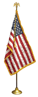 This outstanding US indoor flag kit will look great in your business, school, church, courthouse, or home. This is the best quality kit available, and is priced at great savings to you. The nylon flag is made in the USA. The kit includes a 3ft x 5ft US American nylon flag with pole hem and gold rayon fringe made in the USA.